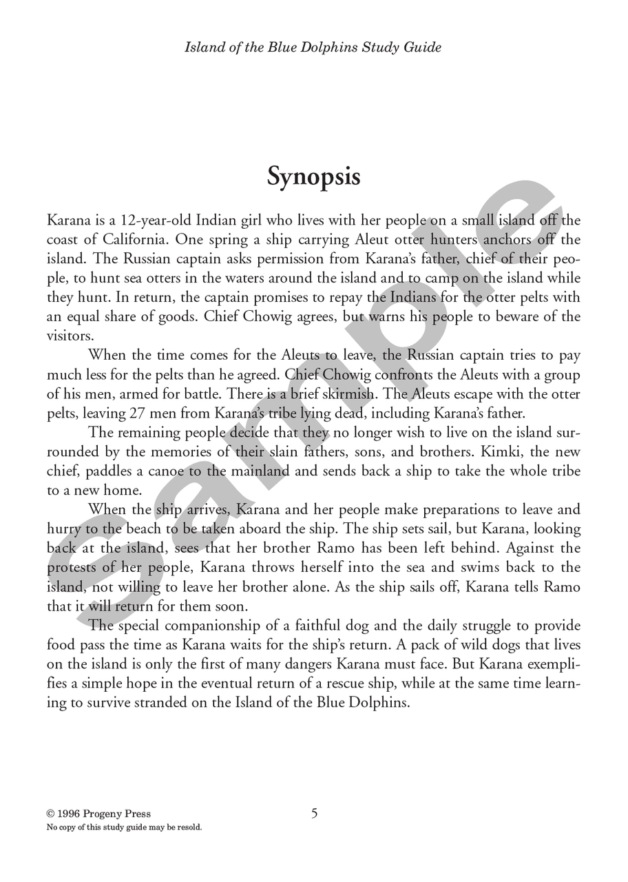 Island Of The Blue Dolphins Study Guide Progeny Press Literature Curriculum